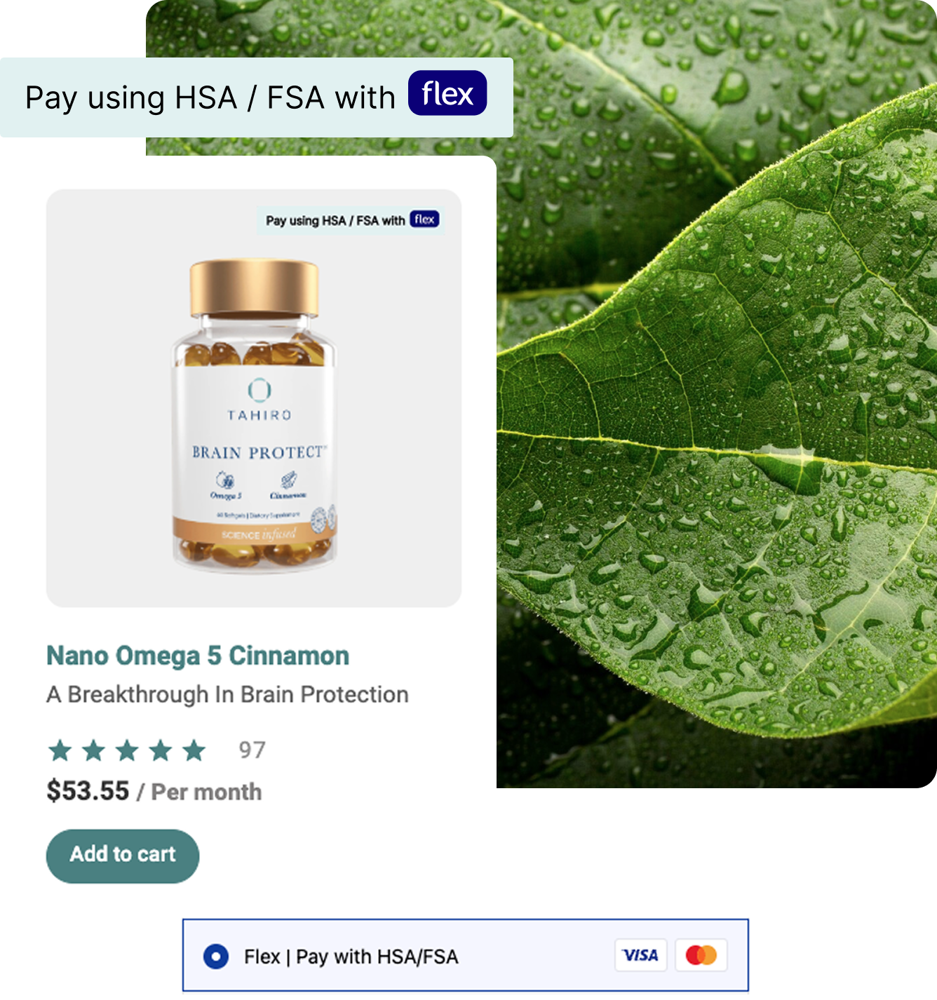 Tahiro has partnered with Flex to allow you to use your Health Savings Account (HSA) or Flexible Spending Account (FSA). This means you can now use your HSA or FSA debit card to buy Tahiro with pre-tax dollars, resulting in net savings of 30-40%, depending on your tax bracket.