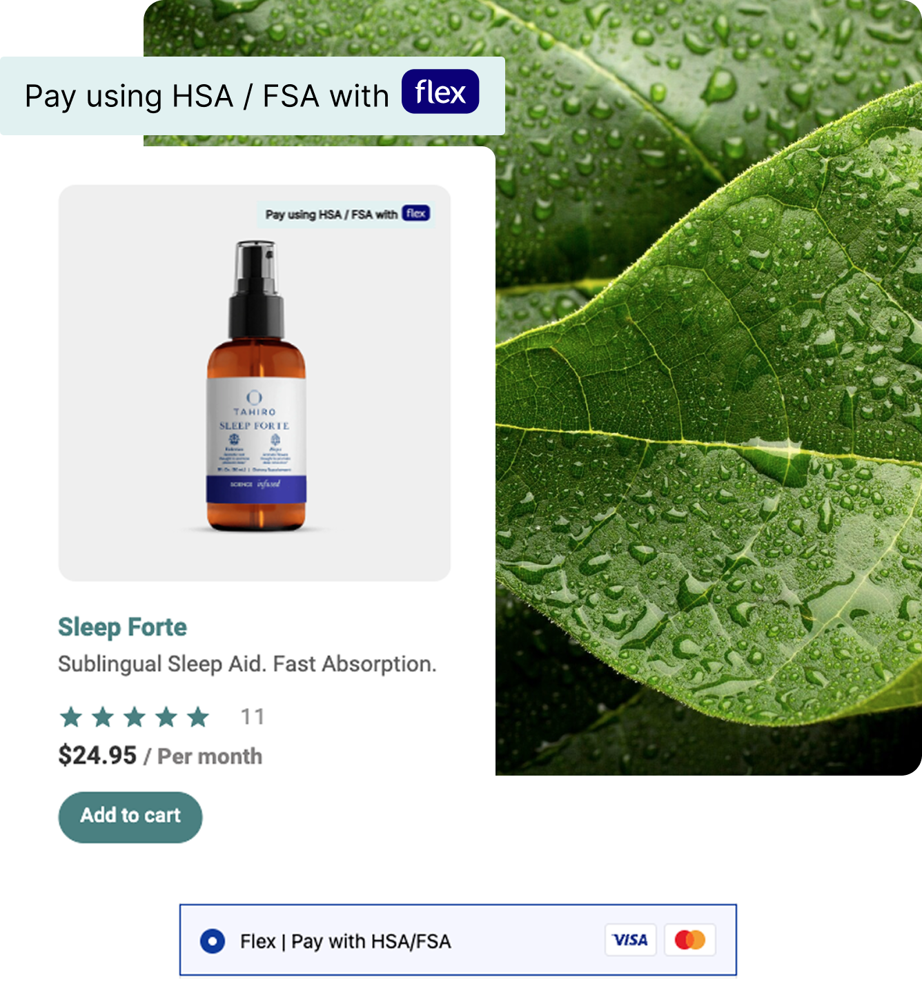 To use your HSA or FSA debit card, add products to your cart as usual. At checkout, select “Flex | Pay with HSA/FSA” as your payment option, enter your HSA or FSA debit card, and complete your checkout as usual. If you don’t see “Flex | Pay with HSA/FSA,” you may be in Shop Pay. Select “checkout as guest” to view more payment options.
